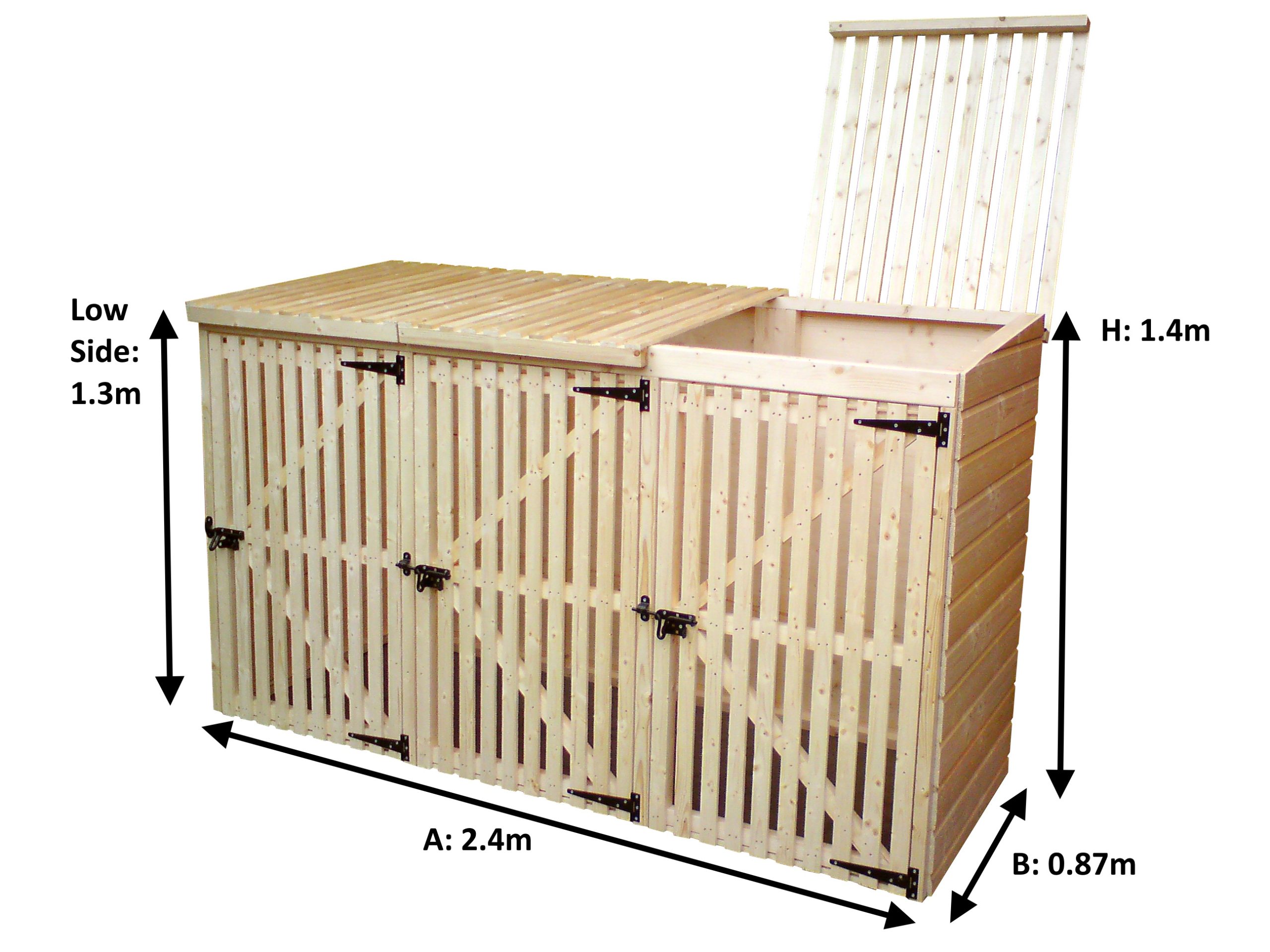 - Felted roof instead of slatted roof (please note only the slatted roof has individually opening lids on the double and triple models). The felted roof is still hinged but can be heavy to open.