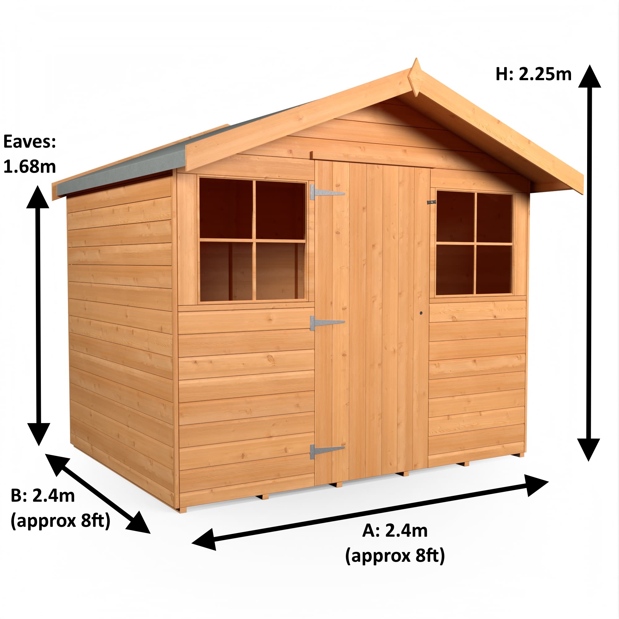 Eaves Height: On Apex Roofs this is the internal height at the lowest point of the roof (at the sides).