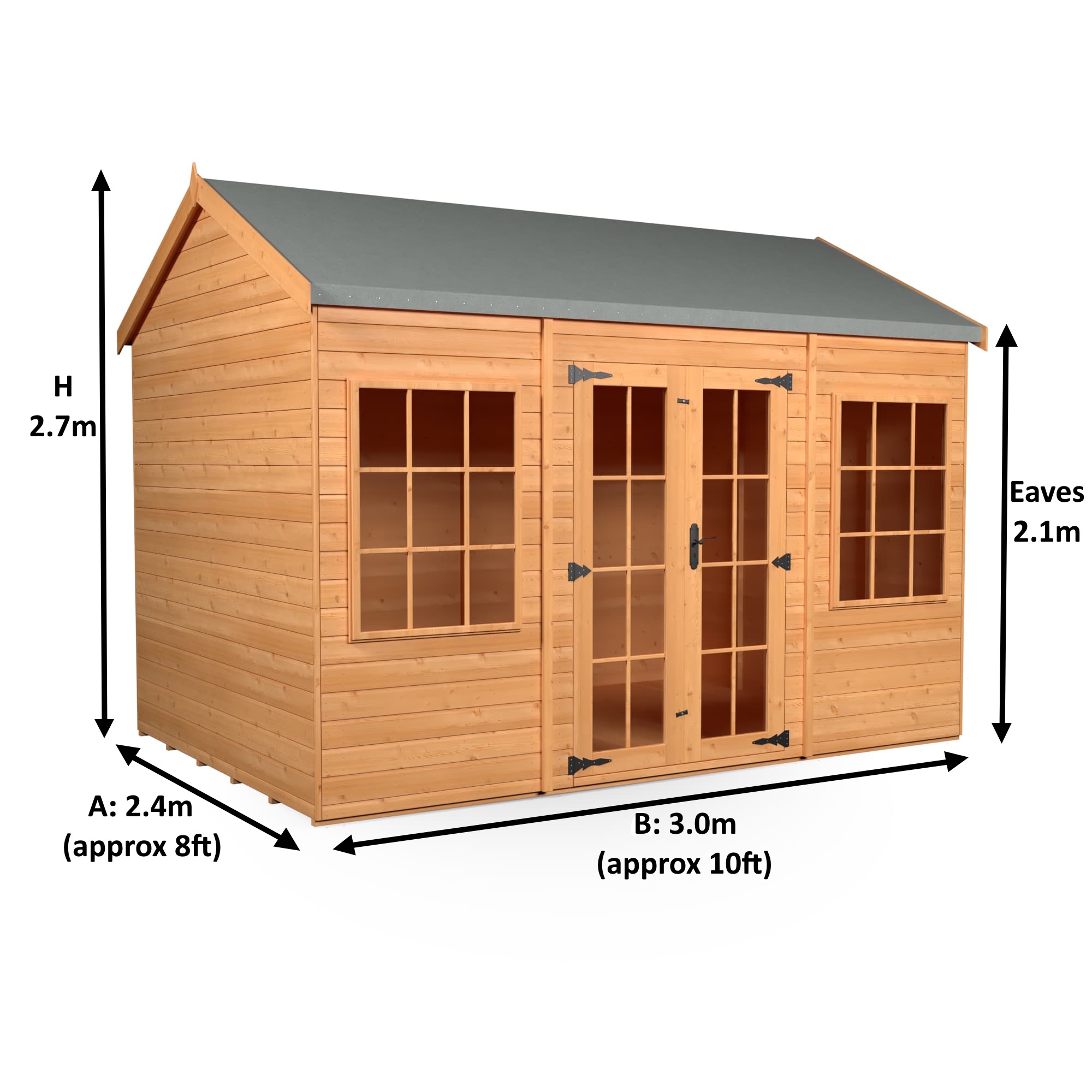 Eaves Height: On Apex Roofs this is the internal height at the lowest point of the roof (at the sides).