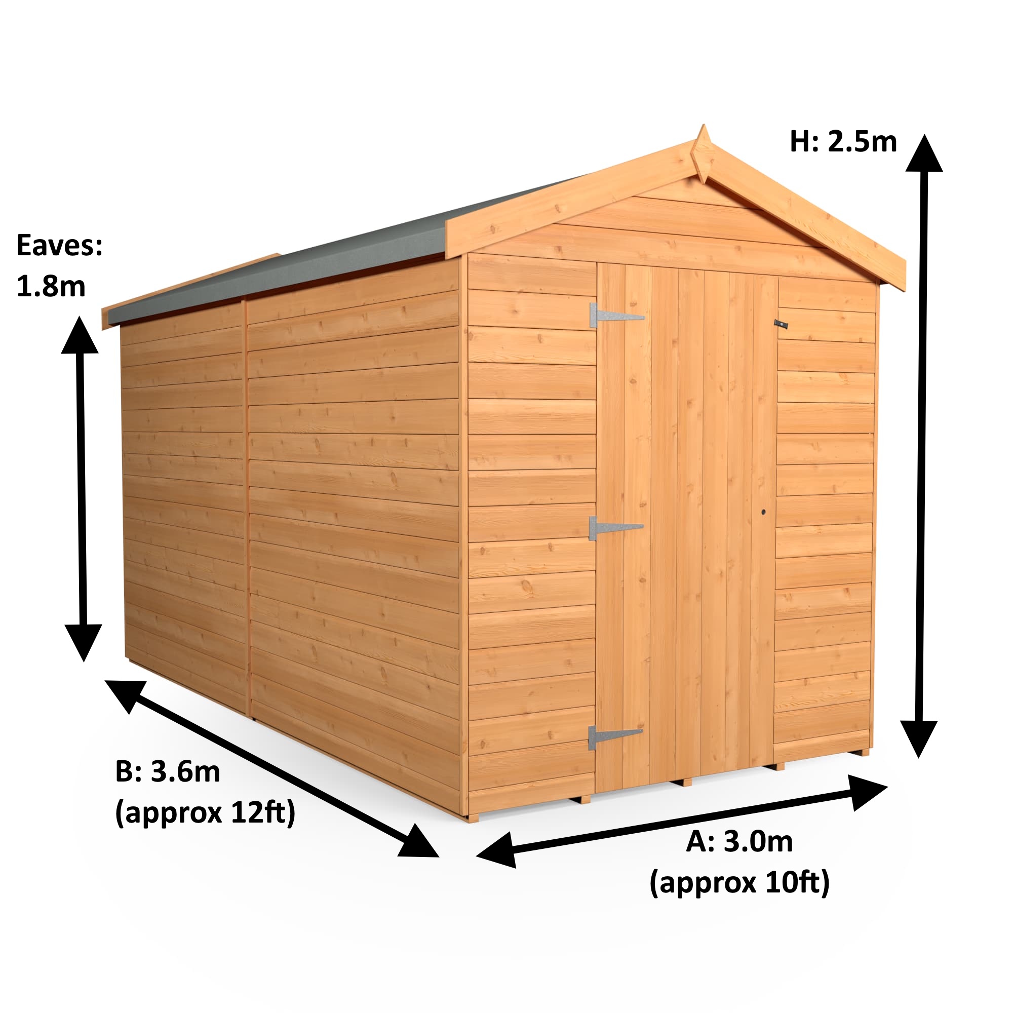 Eaves Height: On Apex Roofs this is the internal height at the lowest point of the roof (at the sides).