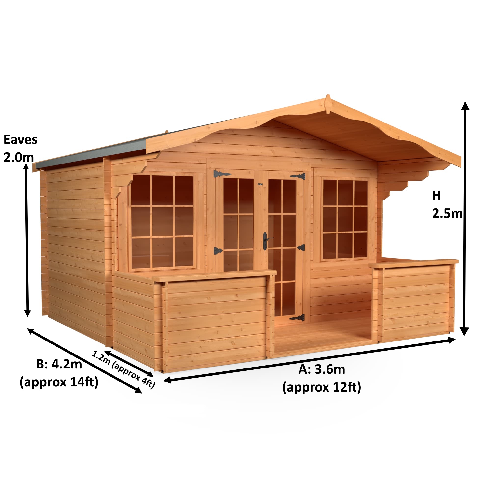 Eaves Height: On Apex Roofs this is the internal height at the lowest point of the roof (at the sides).